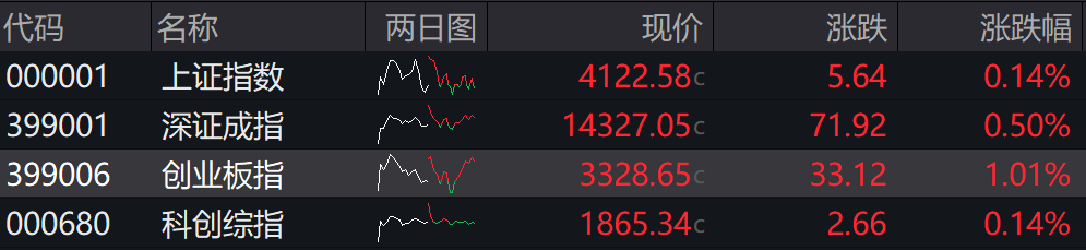 沪指涨0.22%,深成指涨0.41%,创业板指涨0.52%。科创综指涨1.03%。